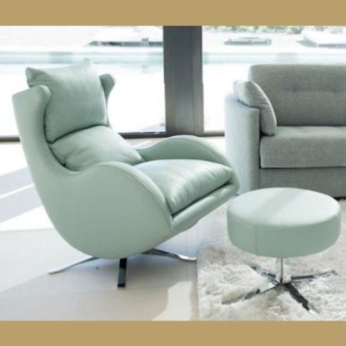 | | Le Lenny de chez Fama est un fauteuil de relaxation avec balancier pivotant sur 360°. Le dos s'incline sur l’arrière.